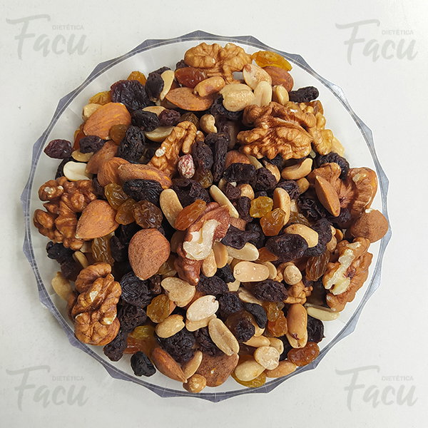 Componentes 1- Almendras guara 2- Nueces Cuartos extra light 3- Pasas de uva sultaninas ( sin semillas) 4- Mani tostado sin sal 5- Pasas de uva rubias ( sin semillas )