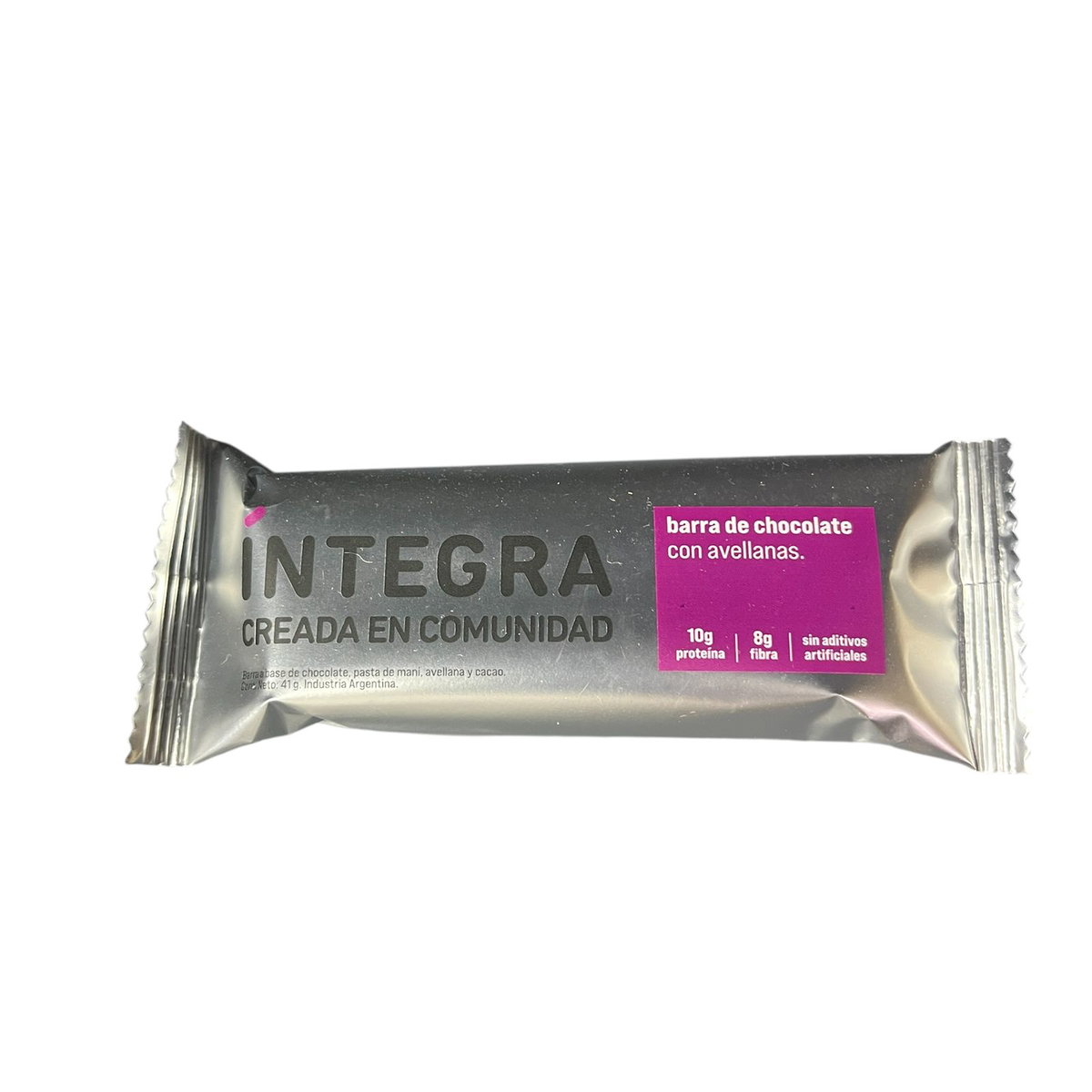 NUEVAS BARRITAS DE CHOCOLATE ÍNTEGRA41 GR C/ULIBRE DE SELLOS 10 GR PROTEINA8 GR FIBRABASE DE CHOCOLATE, PASTA DE MANI, AVELLANA Y CACAOBARRA DE CHOCOLATE CON AVELLANAS