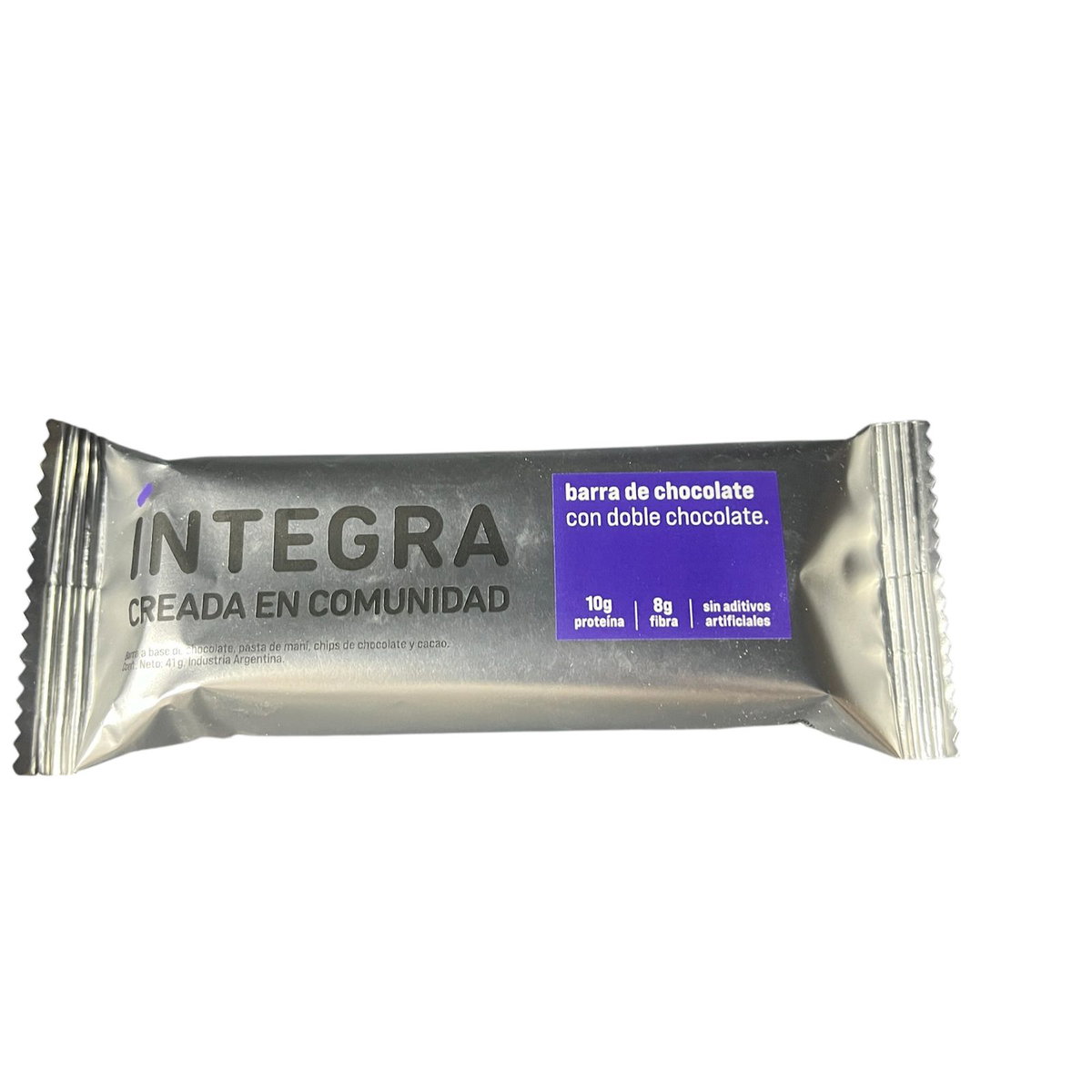 NUEVAS BARRITAS DE CHOCOLATE ÍNTEGRA LIBRE DE SELLOS 41 GR C/U10 GR DE PROTEINA 8 GR FIBRABASE DE CHOCOLATE, PASTA DE MANI, CHIPS DE CHOCO Y CACAO