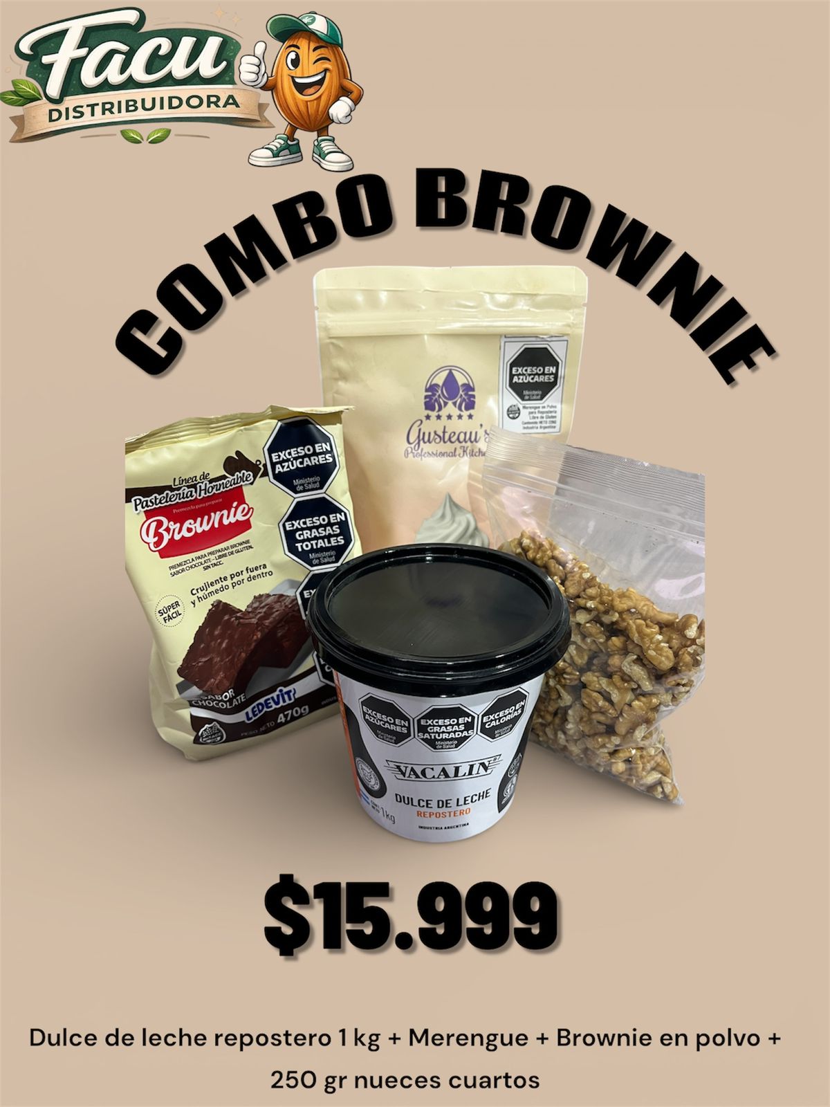 COMBOPAQUETE LEDEVIT BROWNIE EN POLVO 250 GR NUECES CUARTOS